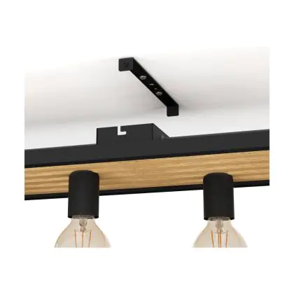Beschreibung Eglo Deckenleuchte Consett Stahl Holz Schwarz Braun | IP20 - Geeignet für 6x E27