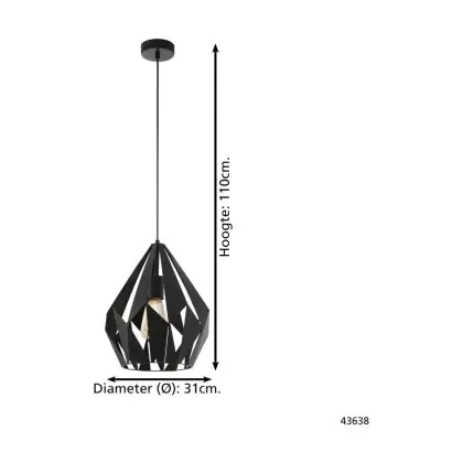 Beschreibung Eglo Pendelleuchte Carlton 1 Stahl Schwarz | IP20 - Geeignet für 1x E27