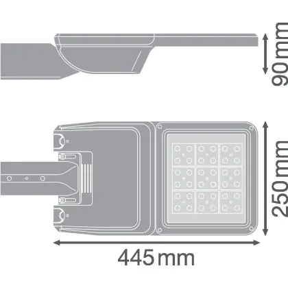 Beschreibung Ledvance LED-Straßenbeleuchtung Flex klein RV25ST Grau 13W 1700lm 25x145D - 730 Warmweiß | IP66 – Asymmetrisch