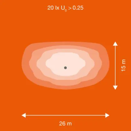 Diese LED-Straßenbeleuchtung strahlt Licht mit einer neutralen kaltweißen Farbtemperatur von 4.000 Kelvin ab. Diese Lichtfarbe erhöht das Seh- und Konzentrationsvermögen.