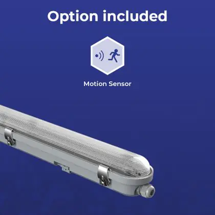 Die Noxion LED Feuchtraumleuchte Poseidon V3.0 30W 3900/4200lm - 830-865 CCT | 120cm - Durchgangsverdrahtung (5x2.5mm2) - Bewegungs- Und Lichtsensor ist eine Feuchtraumleuchte. Sie strahlt Licht in der Farbtemperatur 3000K - 4000K - 6500K CCT aus und punktet durch eine lange Lebensdauer. Diese Leuchte ist speziell zur Verwendung in Feuchträumen (Keller, Waschräume, etc.) vorgesehen.
