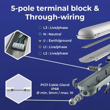 Beschreibung Noxion LED Feuchtraumleuchte Poseidon V3.0 35-65W 4550-9100lm - 830-865 CCT | 150cm - Durchgangsverdrahtung (5x2.5mm2)