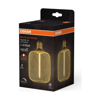 Die Osram Decor Straw E27 Special Fadenlampe Klar 3.5W 150lm - 818 Extra Warmweiß | Dimmbar - Ersatz Für 15W ist eine effiziente E27 LED-Lampe mit Retrodesign und der perfekte Ersatz für Ihre konventionellen 15W Lampen mit E27. Zudem strahlt sie Licht in der Farbtemperatur 1800K - Extra Warmweiß aus und punktet durch eine lange Lebensdauer.
