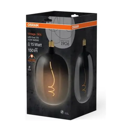 Die Osram Vintage 1906 LED E27 Special Fadenlampe Smoke 4.5W 150lm - 818 Extra Warmweiß | Ersatz Für 15W ist eine effiziente E27 LED-Lampe mit Retrodesign und der perfekte Ersatz für Ihre konventionellen 15W Lampen mit E27. Zudem strahlt sie Licht in der Farbtemperatur 1800K - Extra Warmweiß aus und punktet durch eine lange Lebensdauer.